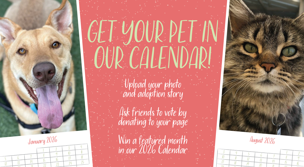 The Pets of the Year Calendar Contest is a peer-based fundraiser for Woods Humane Society which runs September 1 - 30. Click here to set up your fundraising page.